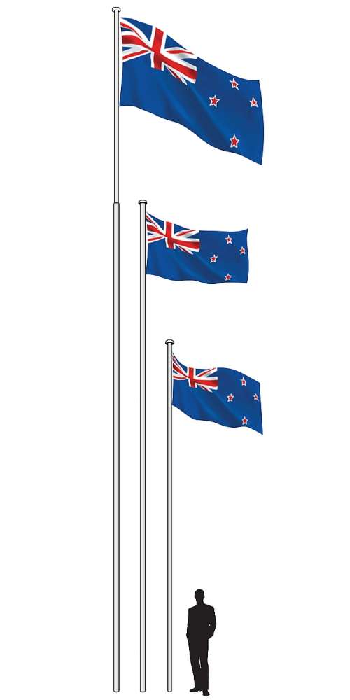 Click here to view our flagpole range.  These poles are the most durable flag poles available  and have been used widely for the last 20 years throughout NZ. They are made from powder coated marine grade aluminium and designed to last for many years in NZ's harsh environment.  All components are made in NZ to our strict standards.